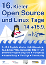 - 14.9. + 15.9. Kieler Open Source und Linux Tage