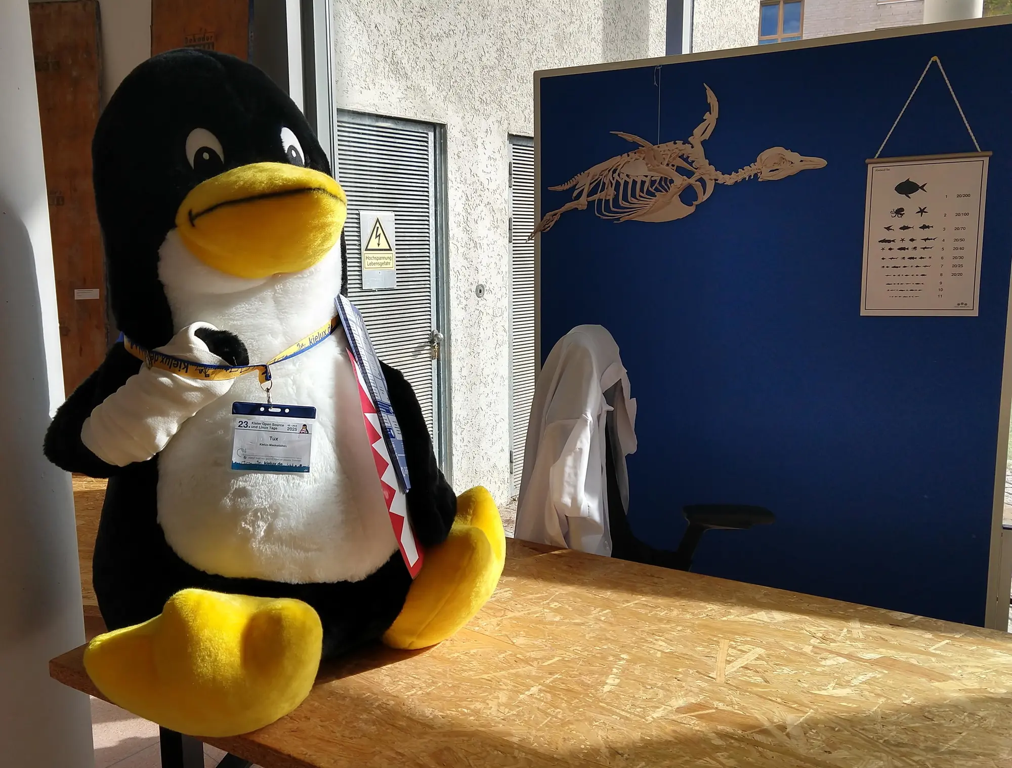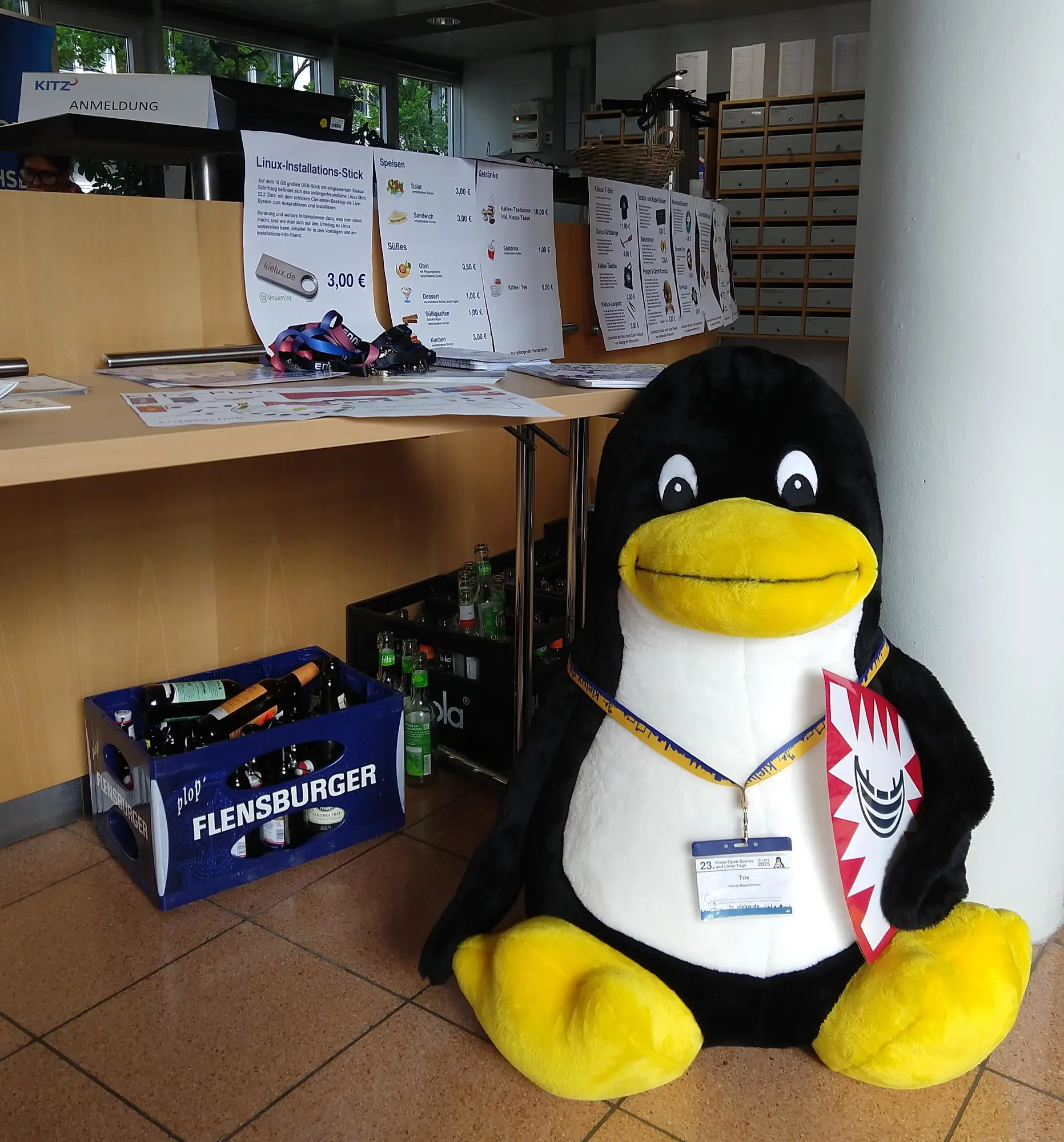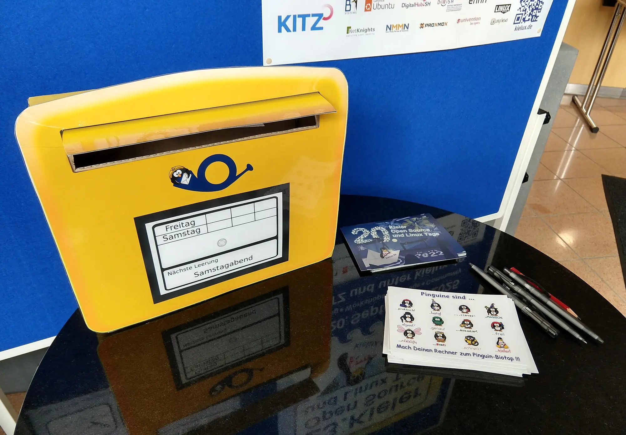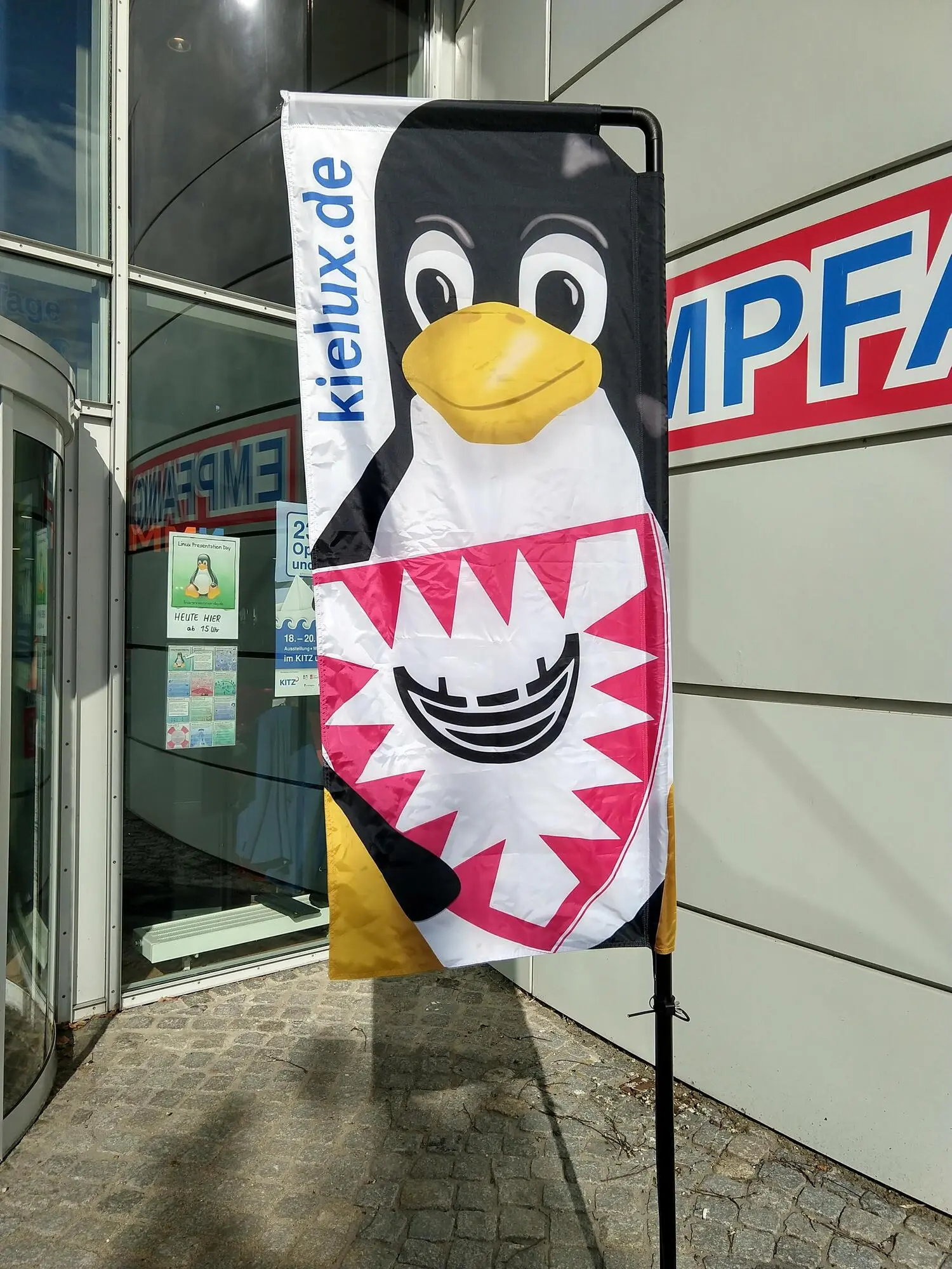 Das Organisations-Team der Kielux trifft sich im Frühsommer im KITZ, um gemeinsam zu planen. (Foto: CC-By-SA A) In mehreren Technikübungstreffen wird geprobt, wie die Audio- und Videotechnik aufgebaut und bedient wird. (Foto: CC-By-SA Hauke Goos-Habermann) Schon bald trudeln die ersten Bestellungen ein, wie zum Beispiel diese niedlichen Pinguin-Monitorwischer. (Foto: CC-By-SA Düsmaster) Für die Installation von Linux Mint im Rahmen der Aktion 'End of 10' haben wir USB-Sticks mit Kielux-Schriftzug bestellt. (Foto: CC-By-SA Düsmaster) openSUSE hat uns für die Verlosung unter anderem einige kuschlige Chamäleons zugeschickt. (Foto: CC-By-SA Duesmaster) Von PrimeLine gab es für die Verlosung eine riesige Kiste mit bereits mit nützlichen Dingen vorgefüllten Turnbeuteln. (Foto: CC-By-SA Düsmaster) Tuxedo sponsorte neben vielen 3-D-gedruckten Giveaways auch 3 tolle Tux-Armbanduhren. (Foto: © Annika Litzel) Für das Gewinnspiel auf LinuxNews.de haben wir drei schöne Gewinnertüten zusammengestellt; die Armbanduhr kam jeweils noch dazu. (Foto: CC-By-SA Maren Hachmann) Ende September haben wir die Kielux mit einem Quiz, einem unterhaltsamen Asteroids-Spiel und einigen alten Computern auf der Kieler Museumsnacht im Computermuseum vorgestellt, und damit vielen jungen und jung gebliebenen Besuchern geholfen, die langen Wartezeiten zu überbrücken. (Foto: CC-By-SA Maren Hachmann) Im September wurde es langsam ernst: an der Veloroute 10 verkündete ein Kielux-Banner den baldigen Start der Veranstaltung. (Foto: CC-By-SA Andree Mehrens) Plakate tauchten überall in Kiel und im KITZ auf. (Foto: CC-By-SA Andree Mehrens) Im KITZ begann Tux auch bald damit, Programme an die dort arbeitenden Menschen zu verteilen. (Foto: CC-By-SA Roland Hüneburg) Unsere Reisebloggerin Pinga posierte für ein Werbefoto für die USB-Stick-Aktion. (Foto: CC-By-SA Maren Hachmann) Schlussendlich waren alle unsere Reiseblogger trotz diverser Schwierigkeiten heile in Kiel angekommen. (Foto: CC-By-SA Maren Hachmann) Am Mittwoch vor der Kielux begann der Aufbau, hier die Bestuhlung des großen Vortragsraumes. (Foto: CC-By-SA Düsmaster) Donnerstagmittag musste dann alles schnell gehen mit dem Aufbau der Technik. (Foto: CC-By-SA Düsmaster) Der Regieplatz in R114 ist fertig vorbereitet. (Foto: CC-By-SA Roland Hüneburg) Auch im TuxLab wird die Technik eingerichtet. (Foto: CC-By-SA Maren Hachmann) Am Empfang ist alles fertig beschildert, der Kaffee steht bereit - es kann losgehen! (Foto: CC-By-SA Roland Hüneburg) Ein Banner leitet die Gäste zum Haupteingang des KITZ. (Foto: CC-By-SA Maren Hachmann) Ein freundliches 'Herzlich willkommen' grüßt am Eingang. (Foto: CC-By-SA Roland Hüneburg) Spätestens am Haupteingang besteht kein Zweifel mehr: Es ist wieder Kielux! (Foto: CC-By-SA Maren Hachmann) Der Kielux-Tux flattert den Gästen entgegen. (Foto: CC-By-SA Maren Hachmann) Am Donnerstag, am Linux Presentation Day, wurde erklärt, warum man Linux verwenden sollte und wie das geht. (Foto: CC-By-SA Roland Hüneburg) Am Stand von B1 … (Foto: CC-By-SA Andree Mehrens) … gab es angeregte Unterhaltungen … (Foto: CC-By-SA Maren Hachmann) … und neben den 'großen' Beratern auch einen ganz kleinen. (Foto: CC-By-SA Roland Hüneburg) Der Computerclub Elmshorn präsentierte unter anderem Linux auf Apple-Geräten mit openCore. (Foto: CC-By-SA Maren Hachmann) Einige Unternehmen und Organisationen waren durch Rollups präsent, so auch der DigitalHub.SH und die GONICUS GmbH. Daneben stand gleich unsere neue Anzeige für aktuell laufende Vorträge und Workshops. (Foto: CC-By-SA Maren Hachmann) Am EGroupware-Stand konnte man sich die umfangreiche Groupware direkt an einer laufenden Instanz erklären lassen. (Foto: CC-By-SA Maren Hachmann) Das Poster zeigt, was in EGroupware alles drin ist, und auch, dass weitere Anwendungen integriert werden können. (Foto: CC-By-SA Maren Hachmann) Zu Inkscape gab es nicht nur einen Workshop, sondern auch einen Aufsteller mit kleinen Giveaways. (Foto: CC-By-SA Maren Hachmann) Am Stand der Sticksoftware InkStitch war die Stickmaschine am Samstag durchgehend in Betrieb, um selbst gemalte Motive auf Aufnäher zu sticken, die hinterher als Souvenir mitgenommen werden konnten. (Foto: CC-By-SA Maren Hachmann) Auch das KITZ hatte seinen eigenen Aufsteller. (Foto: CC-By-SA Maren Hachmann) Bei kivitendo, das für Warenwirtschaft und Finanzbuchhaltung eingesetzt wird, gab es nicht nur gesundes Obst, … (Foto: CC-By-SA Maren Hachmann) … sondern auch ein engagiertes und fröhliches Team, das einem die Software nahebrachte. (Foto: CC-By-SA Maren Hachmann) Die LUG Flensburg stellte sich mit einem Stand vor … (Foto: CC-By-SA Maren Hachmann) … und zeigte auch einige der Bastelprojekte, mit denen sie sich im hohen Norden beschäftigen. (Foto: CC-By-SA Andree Mehrens) Tux hat auch bei der LUG FL alles unter Kontrolle. (Foto: CC-By-SA Maren Hachmann) Die Softwareverteilung m23 informierte mit einem Rollup und Infomaterialien über ihre Funktionen. (Foto: CC-By-SA Maren Hachmann) Am Stand von NMMN …(Foto: CC-By-SA Maren Hachmann) … gab es u.a. Informationen zum Hosting anspruchsvoller Serveranwendungen in NMMN-Rechenzentren. (Foto: CC-By-SA Andree Mehrens) Bei openSUSE konnte man viele tolle Chamäleons sehen und vielleicht auch ergattern … (Foto: CC-By-SA Maren Hachmann) … und natürlich alles um und über die Distribution erfahren. (Foto: CC-By-SA Roland Hüneburg) OpenStreetMap und FOSSGIS zeigten an ihrem Stand, wie freie Geodaten gesammelt, … (Foto: CC-By-SA Maren Hachmann) … verarbeitet … (Foto: CC-By-SA Maren Hachmann) … und genutzt - z.B. gedruckt – werden. (Foto: CC-By-SA Maren Hachmann) Wer im überaus beliebten Proxmox-Workshop keinen Platz mehr ergattert hatte, konnte sich zum Glück am Stand über die Virtualisierungs-Alternative informieren. (Foto: CC-By-SA Maren Hachmann) Die Groupware tine konnte man sich an einem Stand vom freundlichen tine-Team zeigen lassen. (Foto: CC-By-SA M