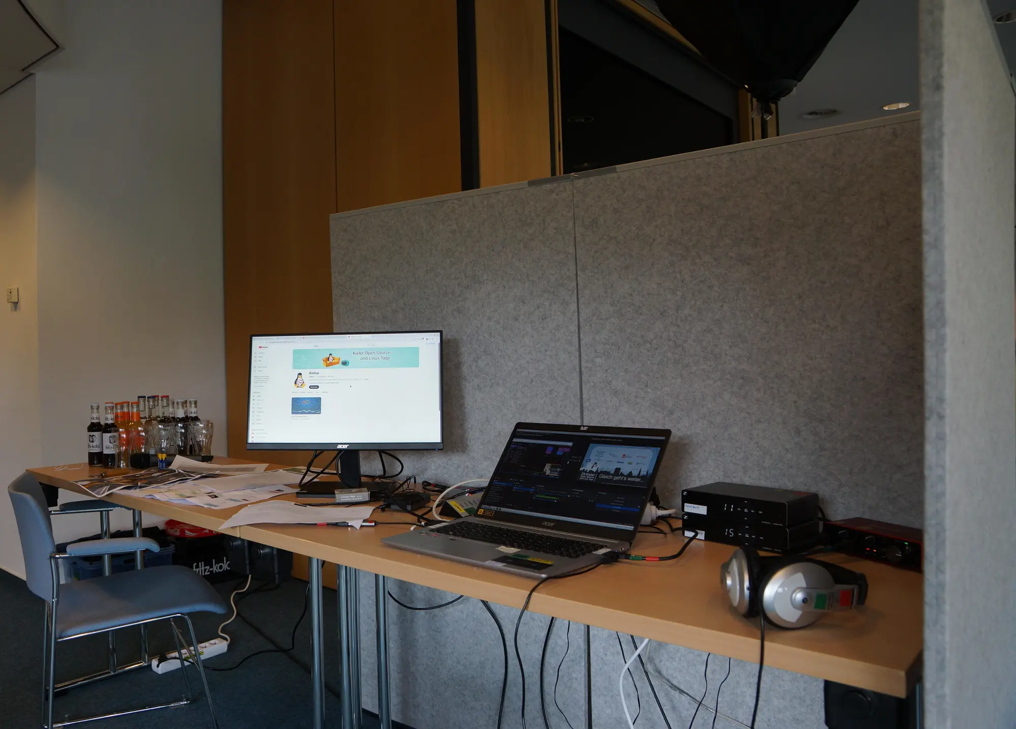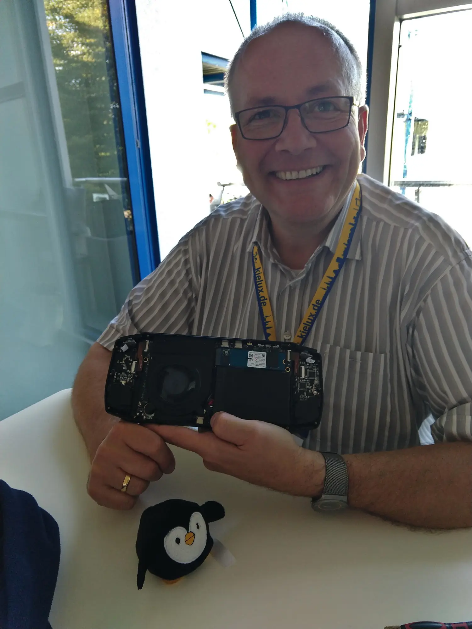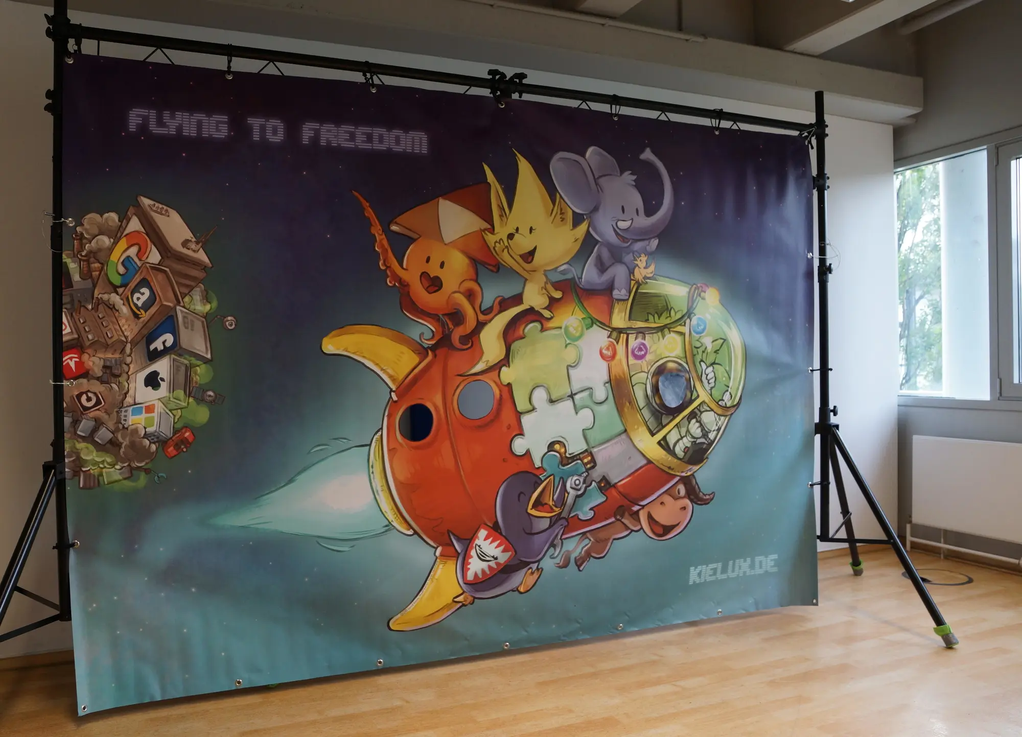 Das Organisations-Team der Kielux trifft sich im Frühsommer im KITZ, um gemeinsam zu planen. (Foto: CC-By-SA A) In mehreren Technikübungstreffen wird geprobt, wie die Audio- und Videotechnik aufgebaut und bedient wird. (Foto: CC-By-SA Hauke Goos-Habermann) Schon bald trudeln die ersten Bestellungen ein, wie zum Beispiel diese niedlichen Pinguin-Monitorwischer. (Foto: CC-By-SA Düsmaster) Für die Installation von Linux Mint im Rahmen der Aktion 'End of 10' haben wir USB-Sticks mit Kielux-Schriftzug bestellt. (Foto: CC-By-SA Düsmaster) openSUSE hat uns für die Verlosung unter anderem einige kuschlige Chamäleons zugeschickt. (Foto: CC-By-SA Duesmaster) Von PrimeLine gab es für die Verlosung eine riesige Kiste mit bereits mit nützlichen Dingen vorgefüllten Turnbeuteln. (Foto: CC-By-SA Düsmaster) Tuxedo sponsorte neben vielen 3-D-gedruckten Giveaways auch 3 tolle Tux-Armbanduhren. (Foto: © Annika Litzel) Für das Gewinnspiel auf LinuxNews.de haben wir drei schöne Gewinnertüten zusammengestellt; die Armbanduhr kam jeweils noch dazu. (Foto: CC-By-SA Maren Hachmann) Ende September haben wir die Kielux mit einem Quiz, einem unterhaltsamen Asteroids-Spiel und einigen alten Computern auf der Kieler Museumsnacht im Computermuseum vorgestellt, und damit vielen jungen und jung gebliebenen Besuchern geholfen, die langen Wartezeiten zu überbrücken. (Foto: CC-By-SA Maren Hachmann) Im September wurde es langsam ernst: an der Veloroute 10 verkündete ein Kielux-Banner den baldigen Start der Veranstaltung. (Foto: CC-By-SA Andree Mehrens) Plakate tauchten überall in Kiel und im KITZ auf. (Foto: CC-By-SA Andree Mehrens) Im KITZ begann Tux auch bald damit, Programme an die dort arbeitenden Menschen zu verteilen. (Foto: CC-By-SA Roland Hüneburg) Unsere Reisebloggerin Pinga posierte für ein Werbefoto für die USB-Stick-Aktion. (Foto: CC-By-SA Maren Hachmann) Schlussendlich waren alle unsere Reiseblogger trotz diverser Schwierigkeiten heile in Kiel angekommen. (Foto: CC-By-SA Maren Hachmann) Am Mittwoch vor der Kielux begann der Aufbau, hier die Bestuhlung des großen Vortragsraumes. (Foto: CC-By-SA Düsmaster) Donnerstagmittag musste dann alles schnell gehen mit dem Aufbau der Technik. (Foto: CC-By-SA Düsmaster) Der Regieplatz in R114 ist fertig vorbereitet. (Foto: CC-By-SA Roland Hüneburg) Auch im TuxLab wird die Technik eingerichtet. (Foto: CC-By-SA Maren Hachmann) Am Empfang ist alles fertig beschildert, der Kaffee steht bereit - es kann losgehen! (Foto: CC-By-SA Roland Hüneburg) Ein Banner leitet die Gäste zum Haupteingang des KITZ. (Foto: CC-By-SA Maren Hachmann) Ein freundliches 'Herzlich willkommen' grüßt am Eingang. (Foto: CC-By-SA Roland Hüneburg) Spätestens am Haupteingang besteht kein Zweifel mehr: Es ist wieder Kielux! (Foto: CC-By-SA Maren Hachmann) Der Kielux-Tux flattert den Gästen entgegen. (Foto: CC-By-SA Maren Hachmann) Am Donnerstag, am Linux Presentation Day, wurde erklärt, warum man Linux verwenden sollte und wie das geht. (Foto: CC-By-SA Roland Hüneburg) Am Stand von B1 … (Foto: CC-By-SA Andree Mehrens) … gab es angeregte Unterhaltungen … (Foto: CC-By-SA Maren Hachmann) … und neben den 'großen' Beratern auch einen ganz kleinen. (Foto: CC-By-SA Roland Hüneburg) Der Computerclub Elmshorn präsentierte unter anderem Linux auf Apple-Geräten mit openCore. (Foto: CC-By-SA Maren Hachmann) Einige Unternehmen und Organisationen waren durch Rollups präsent, so auch der DigitalHub.SH und die GONICUS GmbH. Daneben stand gleich unsere neue Anzeige für aktuell laufende Vorträge und Workshops. (Foto: CC-By-SA Maren Hachmann) Am EGroupware-Stand konnte man sich die umfangreiche Groupware direkt an einer laufenden Instanz erklären lassen. (Foto: CC-By-SA Maren Hachmann) Das Poster zeigt, was in EGroupware alles drin ist, und auch, dass weitere Anwendungen integriert werden können. (Foto: CC-By-SA Maren Hachmann) Zu Inkscape gab es nicht nur einen Workshop, sondern auch einen Aufsteller mit kleinen Giveaways. (Foto: CC-By-SA Maren Hachmann) Am Stand der Sticksoftware InkStitch war die Stickmaschine am Samstag durchgehend in Betrieb, um selbst gemalte Motive auf Aufnäher zu sticken, die hinterher als Souvenir mitgenommen werden konnten. (Foto: CC-By-SA Maren Hachmann) Auch das KITZ hatte seinen eigenen Aufsteller. (Foto: CC-By-SA Maren Hachmann) Bei kivitendo, das für Warenwirtschaft und Finanzbuchhaltung eingesetzt wird, gab es nicht nur gesundes Obst, … (Foto: CC-By-SA Maren Hachmann) … sondern auch ein engagiertes und fröhliches Team, das einem die Software nahebrachte. (Foto: CC-By-SA Maren Hachmann) Die LUG Flensburg stellte sich mit einem Stand vor … (Foto: CC-By-SA Maren Hachmann) … und zeigte auch einige der Bastelprojekte, mit denen sie sich im hohen Norden beschäftigen. (Foto: CC-By-SA Andree Mehrens) Tux hat auch bei der LUG FL alles unter Kontrolle. (Foto: CC-By-SA Maren Hachmann) Die Softwareverteilung m23 informierte mit einem Rollup und Infomaterialien über ihre Funktionen. (Foto: CC-By-SA Maren Hachmann) Am Stand von NMMN …(Foto: CC-By-SA Maren Hachmann) … gab es u.a. Informationen zum Hosting anspruchsvoller Serveranwendungen in NMMN-Rechenzentren. (Foto: CC-By-SA Andree Mehrens) Bei openSUSE konnte man viele tolle Chamäleons sehen und vielleicht auch ergattern … (Foto: CC-By-SA Maren Hachmann) … und natürlich alles um und über die Distribution erfahren. (Foto: CC-By-SA Roland Hüneburg) OpenStreetMap und FOSSGIS zeigten an ihrem Stand, wie freie Geodaten gesammelt, … (Foto: CC-By-SA Maren Hachmann) … verarbeitet … (Foto: CC-By-SA Maren Hachmann) … und genutzt - z.B. gedruckt – werden. (Foto: CC-By-SA Maren Hachmann) Wer im überaus beliebten Proxmox-Workshop keinen Platz mehr ergattert hatte, konnte sich zum Glück am Stand über die Virtualisierungs-Alternative informieren. (Foto: CC-By-SA Maren Hachmann) Die Groupware tine konnte man sich an einem Stand vom freundlichen tine-Team zeigen lassen. (Foto: CC-By-SA M