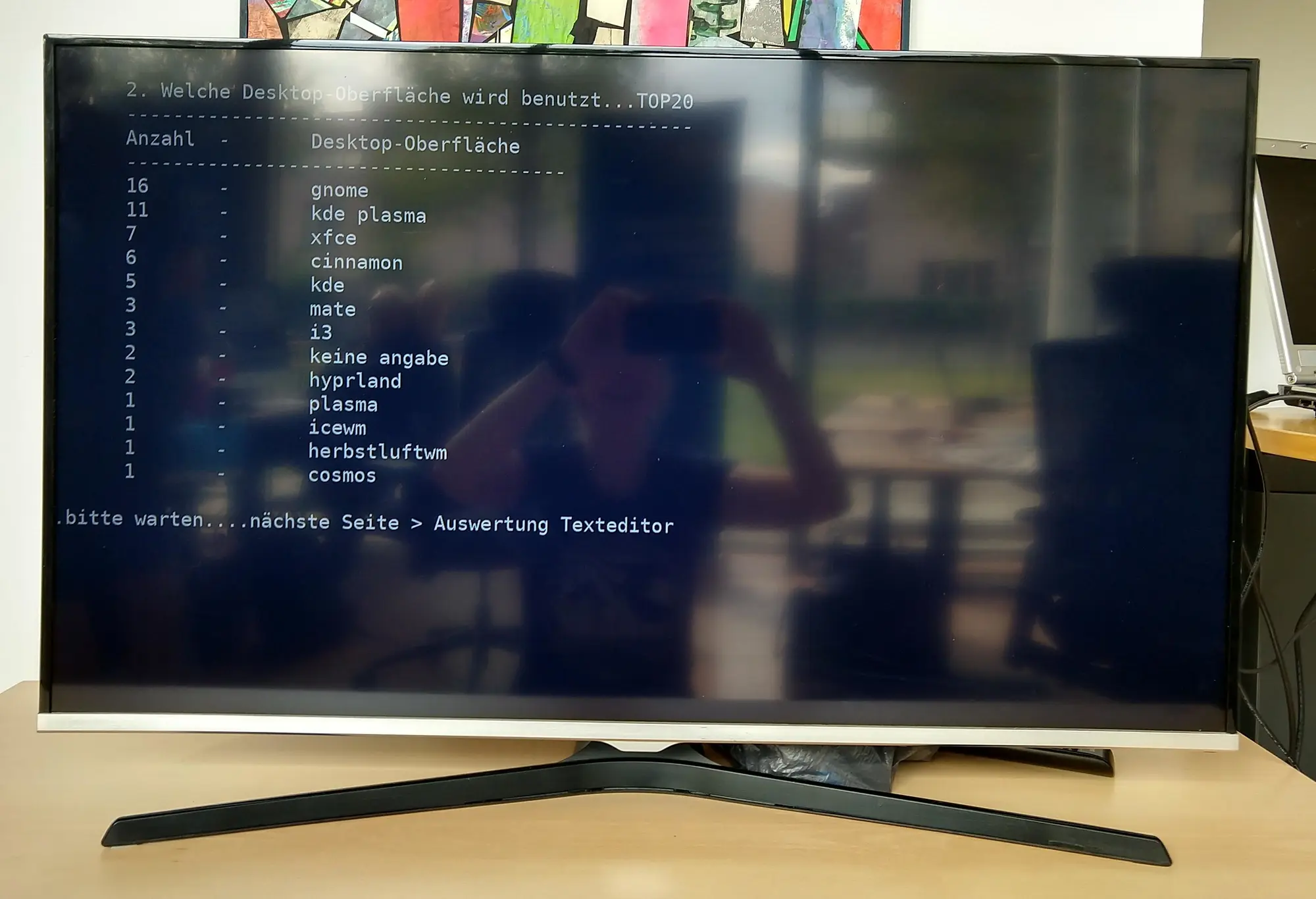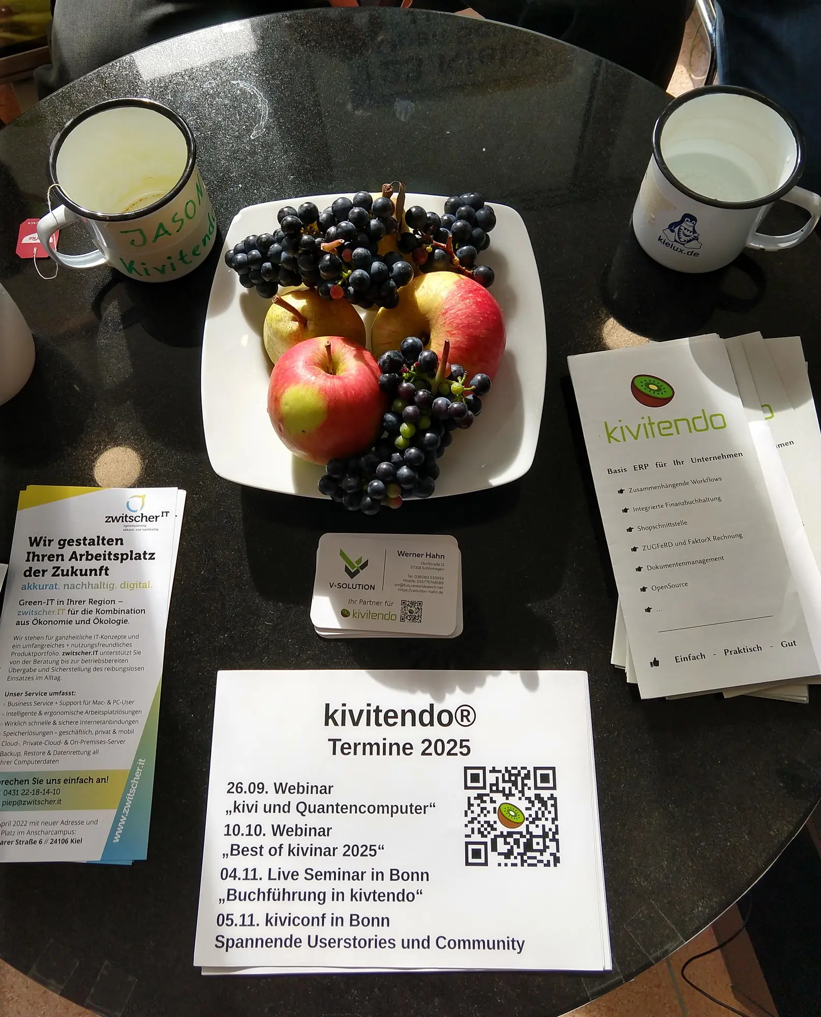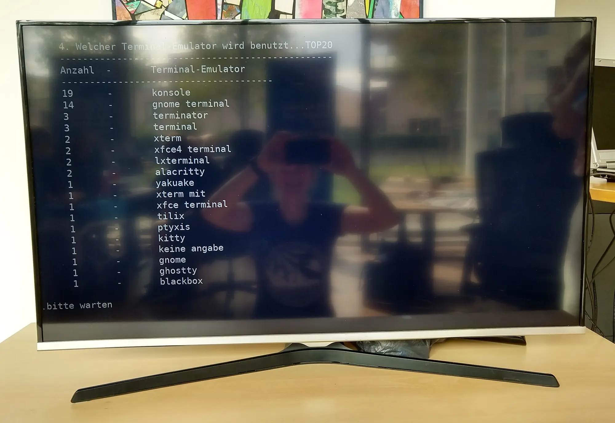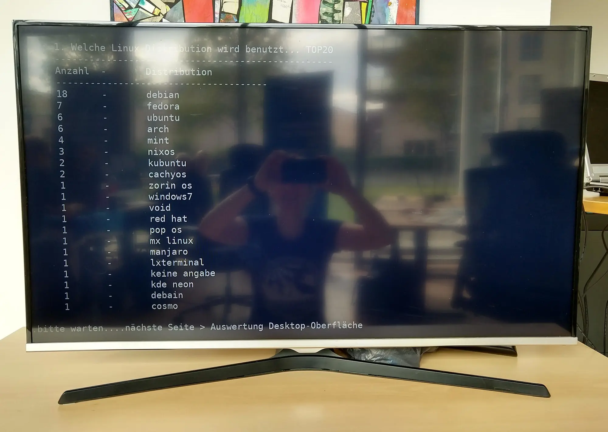 Das Organisations-Team der Kielux trifft sich im Frühsommer im KITZ, um gemeinsam zu planen. (Foto: CC-By-SA A) In mehreren Technikübungstreffen wird geprobt, wie die Audio- und Videotechnik aufgebaut und bedient wird. (Foto: CC-By-SA Hauke Goos-Habermann) Schon bald trudeln die ersten Bestellungen ein, wie zum Beispiel diese niedlichen Pinguin-Monitorwischer. (Foto: CC-By-SA Düsmaster) Für die Installation von Linux Mint im Rahmen der Aktion 'End of 10' haben wir USB-Sticks mit Kielux-Schriftzug bestellt. (Foto: CC-By-SA Düsmaster) openSUSE hat uns für die Verlosung unter anderem einige kuschlige Chamäleons zugeschickt. (Foto: CC-By-SA Duesmaster) Von PrimeLine gab es für die Verlosung eine riesige Kiste mit bereits mit nützlichen Dingen vorgefüllten Turnbeuteln. (Foto: CC-By-SA Düsmaster) Tuxedo sponsorte neben vielen 3-D-gedruckten Giveaways auch 3 tolle Tux-Armbanduhren. (Foto: © Annika Litzel) Für das Gewinnspiel auf LinuxNews.de haben wir drei schöne Gewinnertüten zusammengestellt; die Armbanduhr kam jeweils noch dazu. (Foto: CC-By-SA Maren Hachmann) Ende September haben wir die Kielux mit einem Quiz, einem unterhaltsamen Asteroids-Spiel und einigen alten Computern auf der Kieler Museumsnacht im Computermuseum vorgestellt, und damit vielen jungen und jung gebliebenen Besuchern geholfen, die langen Wartezeiten zu überbrücken. (Foto: CC-By-SA Maren Hachmann) Im September wurde es langsam ernst: an der Veloroute 10 verkündete ein Kielux-Banner den baldigen Start der Veranstaltung. (Foto: CC-By-SA Andree Mehrens) Plakate tauchten überall in Kiel und im KITZ auf. (Foto: CC-By-SA Andree Mehrens) Im KITZ begann Tux auch bald damit, Programme an die dort arbeitenden Menschen zu verteilen. (Foto: CC-By-SA Roland Hüneburg) Unsere Reisebloggerin Pinga posierte für ein Werbefoto für die USB-Stick-Aktion. (Foto: CC-By-SA Maren Hachmann) Schlussendlich waren alle unsere Reiseblogger trotz diverser Schwierigkeiten heile in Kiel angekommen. (Foto: CC-By-SA Maren Hachmann) Am Mittwoch vor der Kielux begann der Aufbau, hier die Bestuhlung des großen Vortragsraumes. (Foto: CC-By-SA Düsmaster) Donnerstagmittag musste dann alles schnell gehen mit dem Aufbau der Technik. (Foto: CC-By-SA Düsmaster) Der Regieplatz in R114 ist fertig vorbereitet. (Foto: CC-By-SA Roland Hüneburg) Auch im TuxLab wird die Technik eingerichtet. (Foto: CC-By-SA Maren Hachmann) Am Empfang ist alles fertig beschildert, der Kaffee steht bereit - es kann losgehen! (Foto: CC-By-SA Roland Hüneburg) Ein Banner leitet die Gäste zum Haupteingang des KITZ. (Foto: CC-By-SA Maren Hachmann) Ein freundliches 'Herzlich willkommen' grüßt am Eingang. (Foto: CC-By-SA Roland Hüneburg) Spätestens am Haupteingang besteht kein Zweifel mehr: Es ist wieder Kielux! (Foto: CC-By-SA Maren Hachmann) Der Kielux-Tux flattert den Gästen entgegen. (Foto: CC-By-SA Maren Hachmann) Am Donnerstag, am Linux Presentation Day, wurde erklärt, warum man Linux verwenden sollte und wie das geht. (Foto: CC-By-SA Roland Hüneburg) Am Stand von B1 … (Foto: CC-By-SA Andree Mehrens) … gab es angeregte Unterhaltungen … (Foto: CC-By-SA Maren Hachmann) … und neben den 'großen' Beratern auch einen ganz kleinen. (Foto: CC-By-SA Roland Hüneburg) Der Computerclub Elmshorn präsentierte unter anderem Linux auf Apple-Geräten mit openCore. (Foto: CC-By-SA Maren Hachmann) Einige Unternehmen und Organisationen waren durch Rollups präsent, so auch der DigitalHub.SH und die GONICUS GmbH. Daneben stand gleich unsere neue Anzeige für aktuell laufende Vorträge und Workshops. (Foto: CC-By-SA Maren Hachmann) Am EGroupware-Stand konnte man sich die umfangreiche Groupware direkt an einer laufenden Instanz erklären lassen. (Foto: CC-By-SA Maren Hachmann) Das Poster zeigt, was in EGroupware alles drin ist, und auch, dass weitere Anwendungen integriert werden können. (Foto: CC-By-SA Maren Hachmann) Zu Inkscape gab es nicht nur einen Workshop, sondern auch einen Aufsteller mit kleinen Giveaways. (Foto: CC-By-SA Maren Hachmann) Am Stand der Sticksoftware InkStitch war die Stickmaschine am Samstag durchgehend in Betrieb, um selbst gemalte Motive auf Aufnäher zu sticken, die hinterher als Souvenir mitgenommen werden konnten. (Foto: CC-By-SA Maren Hachmann) Auch das KITZ hatte seinen eigenen Aufsteller. (Foto: CC-By-SA Maren Hachmann) Bei kivitendo, das für Warenwirtschaft und Finanzbuchhaltung eingesetzt wird, gab es nicht nur gesundes Obst, … (Foto: CC-By-SA Maren Hachmann) … sondern auch ein engagiertes und fröhliches Team, das einem die Software nahebrachte. (Foto: CC-By-SA Maren Hachmann) Die LUG Flensburg stellte sich mit einem Stand vor … (Foto: CC-By-SA Maren Hachmann) … und zeigte auch einige der Bastelprojekte, mit denen sie sich im hohen Norden beschäftigen. (Foto: CC-By-SA Andree Mehrens) Tux hat auch bei der LUG FL alles unter Kontrolle. (Foto: CC-By-SA Maren Hachmann) Die Softwareverteilung m23 informierte mit einem Rollup und Infomaterialien über ihre Funktionen. (Foto: CC-By-SA Maren Hachmann) Am Stand von NMMN …(Foto: CC-By-SA Maren Hachmann) … gab es u.a. Informationen zum Hosting anspruchsvoller Serveranwendungen in NMMN-Rechenzentren. (Foto: CC-By-SA Andree Mehrens) Bei openSUSE konnte man viele tolle Chamäleons sehen und vielleicht auch ergattern … (Foto: CC-By-SA Maren Hachmann) … und natürlich alles um und über die Distribution erfahren. (Foto: CC-By-SA Roland Hüneburg) OpenStreetMap und FOSSGIS zeigten an ihrem Stand, wie freie Geodaten gesammelt, … (Foto: CC-By-SA Maren Hachmann) … verarbeitet … (Foto: CC-By-SA Maren Hachmann) … und genutzt - z.B. gedruckt – werden. (Foto: CC-By-SA Maren Hachmann) Wer im überaus beliebten Proxmox-Workshop keinen Platz mehr ergattert hatte, konnte sich zum Glück am Stand über die Virtualisierungs-Alternative informieren. (Foto: CC-By-SA Maren Hachmann) Die Groupware tine konnte man sich an einem Stand vom freundlichen tine-Team zeigen lassen. (Foto: CC-By-SA M