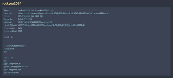 We will rockyou2009, rockyou2021, rockyou2024 ...Tom Gries We will rockyou2009, rockyou2021, rockyou2024 ...Raum Online, Freitag, 20. September 2024 von - Uhr ![]() "Größte Passwortsammlung aller Zeiten aufgedeckt" liest man in regelmäßigen Abständen. Besonders die